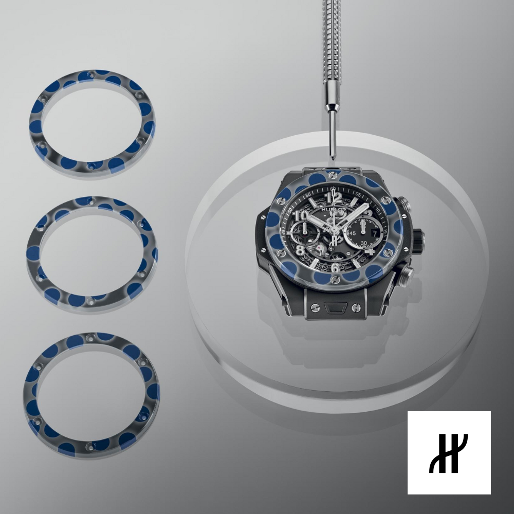 Bằng cách phát triển bộ máy chronograph tự động của riêng mình, Hublot muốn nó – giống như tất cả các sáng tạo của mình – là đầu tiên, khác biệt và độc đáo. Là linh hồn của chiếc đồng hồ, bộ máy này với "trái tim mở" cho thấy thiết kế được tái tạo hoàn toàn, với hệ thống ly hợp kép và bánh xe cột từ phía mặt số cũng như khả năng dự trữ năng lượng 72 giờ. Cấu trúc 354 thành phần của nó đã được đơn giản hóa hết mức có thể để cải thiện độ tin cậy và độ bền. Gốm Đối với Hublot, vật liệu là một phần không thể thiếu trong thiết kế đồng hồ của họ. Chúng phải bổ sung cho thiết kế của chúng, đồng thời bảo vệ cơ chế của chúng và chịu được thử thách của thời gian. Do đó, Nhà sản xuất đã chọn sử dụng gốm công nghệ cao cho một số vành bezel và vỏ; đây là vật liệu siêu bền và gần như hoàn toàn chống trầy xước (ngoại trừ kim cương) với lớp nền zirconium được thiêu kết ở nhiệt độ rất cao. Kích thước 42 mm. Vỏ gốm đen được đánh bóng và phun cát vi mô. Vành gốm nhiều màu được sản xuất đánh bóng với các chấm xanh. Khả năng chống nước 100m hoặc 10 ATM. Mặt kính Sapphire chống phản quang. Mặt số màu đen mờ. Đồng hồ bấm giờ tự động lên dây cót HUB1280 UNICO Manufacture. Bộ máy có bánh xe cột. Dự trữ năng lượng khoảng 72 giờ. Dây đeo bằng cao su lót đen hoàn toàn. Khóa bằng gốm đen và khóa cài bằng titan mạ đen
