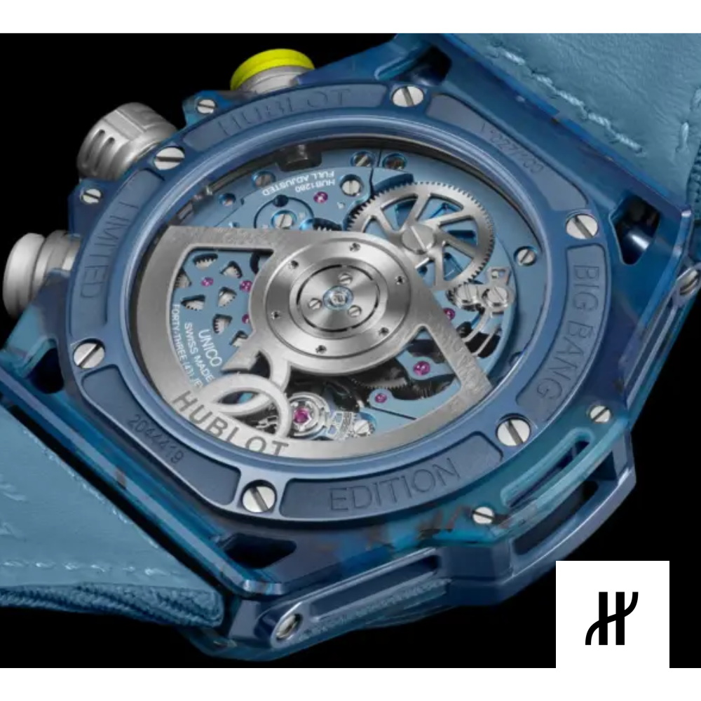 Sự chuyển động : HUB1280 UNICO Manufacture, Đồng hồ bấm giờ tự lên dây cót bằng nhôm PVD xanh da trời
