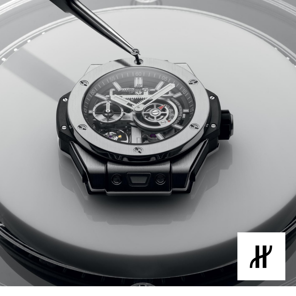 Hublot đã tái tạo sự sáng tạo theo một cách diễn giải hiện đại về bộ máy đồng hồ cơ. Không còn mặt số thông thường, MECA-10 làm nổi bật và thẩm mỹ hóa những thứ thường bị che giấu. Lấy cảm hứng từ hệ thống cấu trúc kiểu Meccano, MECA-10 là một kiệt tác về kỹ thuật vi cơ học và là một bước ngoặt sáng tạo đầy hấp dẫn về cách chúng ta cảm nhận cơ học và chuyển động của thời gian. Giống như một công trình được tạo hình từng lớp, từng viên gạch, Big Bang MECA-10 mang đến điều gì đó để khám phá trong từng chi tiết từ mọi góc độ, nơi sự kết nối giữa chúng tạo nên một vũ đạo năng động. Big Bang MECA-10 nguyên bản đã phá vỡ mọi quy tắc khi ra mắt năm 2016 với hình dáng độc đáo, bao gồm một tấm đế hình vòng tròn mà các cầu nối được gắn vào. Kết quả là một sự hấp dẫn thị giác và tính toàn vẹn về cấu trúc. Giờ đây, Hublot tái hiện lại phiên bản độc đáo này trên bộ máy lộ cơ lên dây cót bằng tay với màn hình tinh tế, mở và mạch lạc, đồng thời vẫn duy trì cấu trúc đặc trưng được nâng tầm với lớp hoàn thiện và trang trí tinh tế. Đối với các kỹ sư và thợ chế tác đồng hồ tại Hublot, thách thức là phải giữ nguyên mọi đặc điểm nguyên bản của MECA-10, đồng thời giảm kích thước của nó để vừa với vỏ Big Bang 42mm mà không ảnh hưởng đến hiệu suất. Kích thước 42 mm. Vỏ Titanium đánh bóng và hoàn thiện bằng satin. Vành bezel Titanium đánh bóng và hoàn thiện bằng satin. Khả năng chống nước 100m hoặc 10 ATM. Mặt kính Sapphire chống phản quang. Mặt số Skeleton đen mờ. HUB1205 Bộ máy Skeleton lên dây cót thủ công. Dự trữ năng lượng 10 ngày. Dây đeo: Dây đeo cao su lót có cấu trúc màu đen. Khóa cài: Khóa cài bằng titan