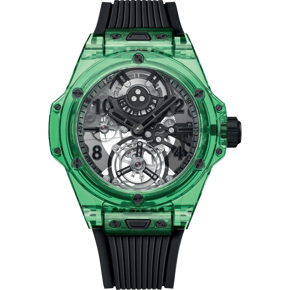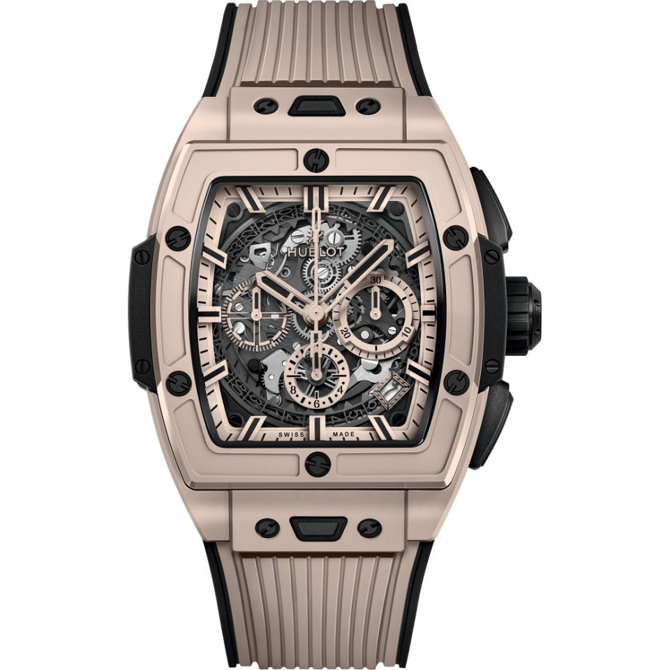 Caliber HUB4700 là phiên bản kế thừa của Caliber El Primero nổi tiếng – đồng hồ bấm giờ đầu tiên có chức năng lên dây tự động kiểu tích hợp (1969), đồng thời cũng là đồng hồ bấm giờ cơ học đầu tiên được trang bị tần số 5 Hz (36’000 alt/h) cho phép độ chính xác 1/10 giây. Trong sự kết hợp hoàn hảo giữa truyền thống và đổi mới, bộ máy hoàn toàn lộ cơ này hiện được trang bị bộ phận điều chỉnh silicon đảm bảo hiệu suất tiên phong, độ chính xác và độ tin cậy. Gốm Đối với Hublot, vật liệu là một phần không thể thiếu trong thiết kế đồng hồ của họ. Chúng phải bổ sung cho thiết kế của họ, đồng thời bảo vệ cơ chế của chúng và chịu được thử thách của thời gian. Do đó, Nhà sản xuất đã chọn sử dụng gốm công nghệ cao cho một số vành và vỏ; đây là vật liệu siêu bền và gần như hoàn toàn chống trầy xước (ngoại trừ kim cương) với lớp nền zirconium được thiêu kết ở nhiệt độ rất cao. Kích thước 42 mm. Vỏ gốm màu be được phun cát và đánh bóng. Vành gốm màu be được phun cát và đánh bóng. Khả năng chống nước 100m hoặc 10 ATM. Mặt kính Sapphire chống phản quang. Mặt kính Sapphire. Bộ máy HUB4700 Bộ máy bấm giờ Skeleton tự lên dây cót. Dự trữ năng lượng 50 giờ. Dây đeo Cao su có cấu trúc lót màu đen và màu be. Khóa gốm đen và khóa cài bằng titan mạ đen